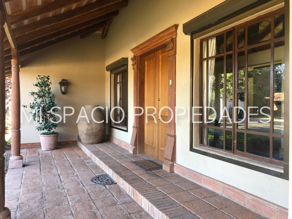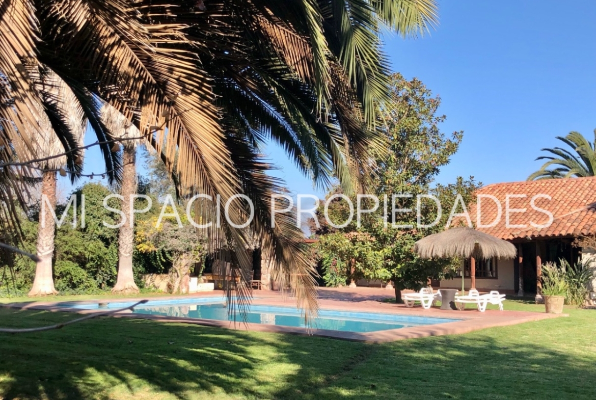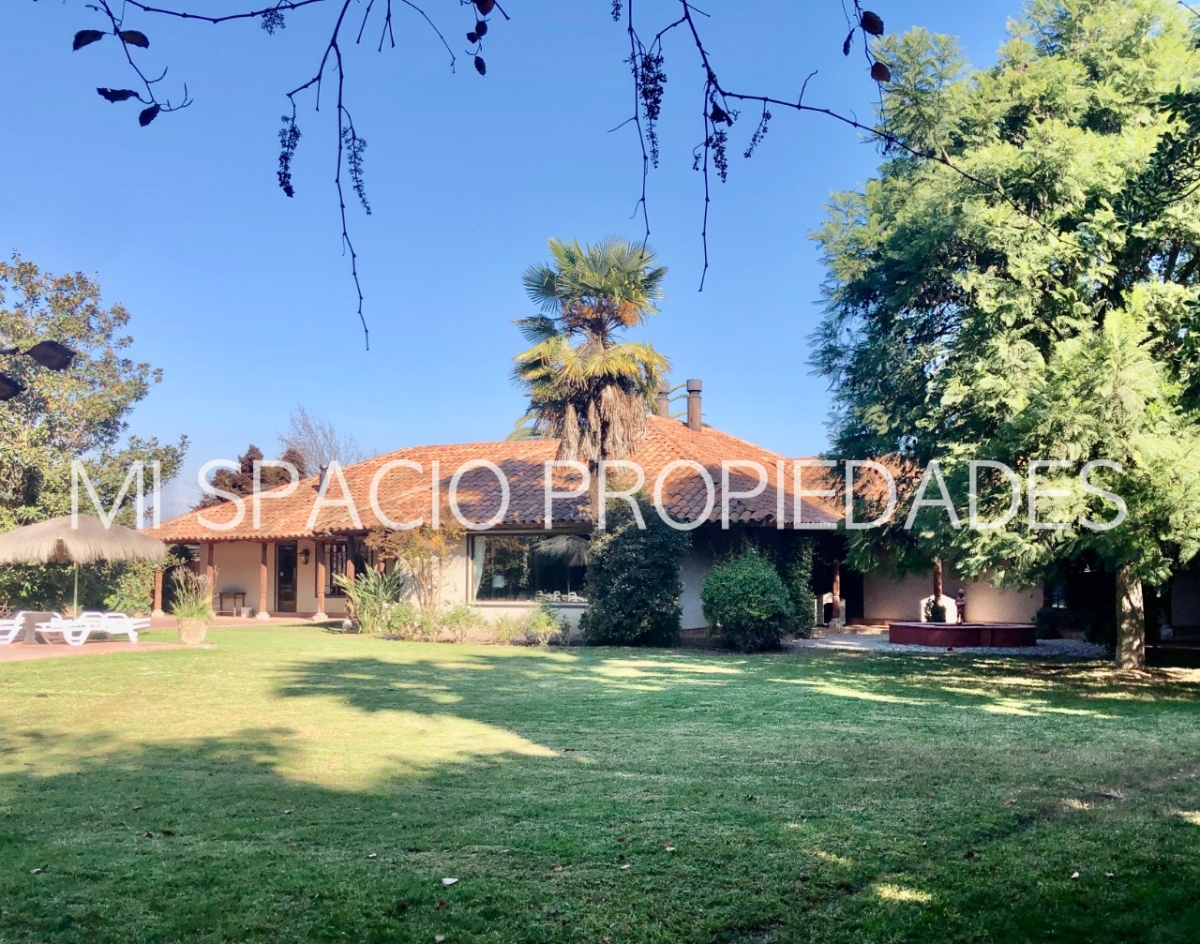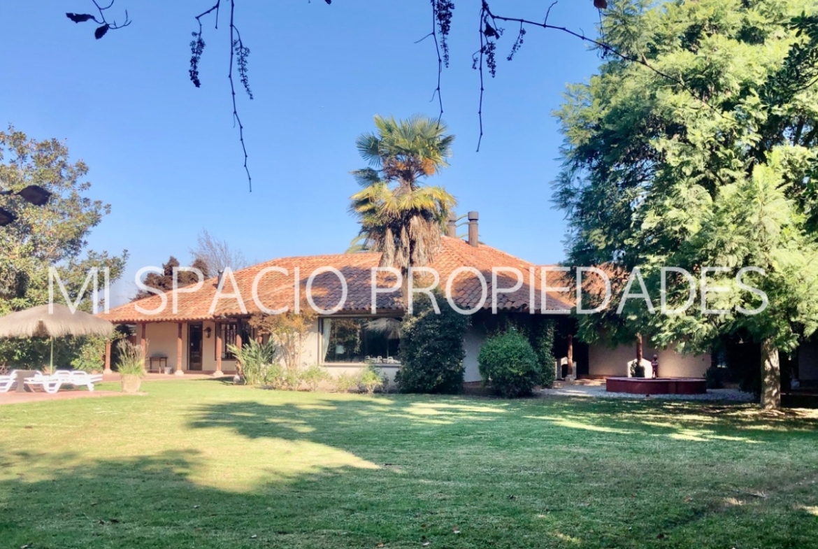 Casa de albañilería reforzada de 500 m2 totales y 380 m2 útiles en parcela de 5000 m2. 4 dormitorios y 4 baños, más servicios. Amplio hall de acceso que accede a gran living, todo en hermosos cielos de doble altura y 2 aguas con vigas a la vista, chimenea. Comedor independiente con muros en ladrillo a la vista, cocina amoblada, cubiertas en granito, isla central, espacio para comedor de diario, equipada: con encimera, horno empotrado y campana, estufa a combustión lenta, cava en obra, lavadero interior y baño de servicio. Baño de visita, amplio escritorio, zona familiar compuesta por 2 dormitorios y baño completo en tándem, dormitorio en suite, sala de estar de cielos de doble, estufa a combustión lenta, repisas en obra y acceso en linda escala en fierro a segundo estar en altillo o mansarda, amplio dormitorio principal en suite, estufa a combustión lenta, sala de baño con tina de hidromasaje y ducha en obra, walk in closet. Espaciosos corredores exteriores, área de servicio independiente, estacionamiento techado para 3 autos, bodega, baño de jardinero, sala de caldera. Quincho con parrilla en obra, horno de barro, piscina, pileta de agua, jardín consolidado con árboles frutales y ornamentales grandes, riego automático, derechos de aguas inscritos, pozo propio y conexión a pozo profundo del condominio, estanque de gas propio, fibra óptica, ventanas en fierro y persianas exteriores, vigas a la vista en cielos de toda la casa, hermosas tejas chilenas, calefacción central a gas por radiadores, generador, ablandador, portón automático. Ubicada en condominio consolidado de 123 parcelas, acceso controlado y diferenciado para residentes y visitas, barreras, guardias móviles, cámaras de vigilancia, factibilidad conexión fibra óptica Movistar, plaza de juegos infantiles y cancha de fútbol, caminos interiores de maicillo, a 3 minutos Autopista del Sol y colegio Trebulco, a 12 minutos colegios Carampangue y Los Ceibos, excelente plusvalía y seguridad.