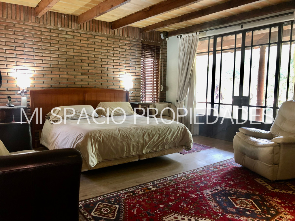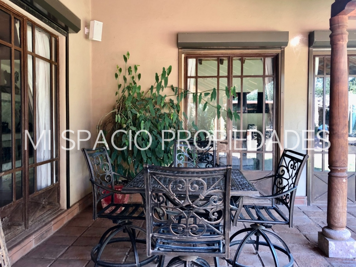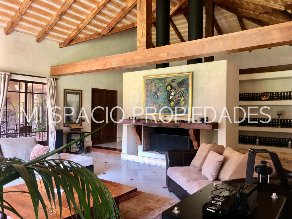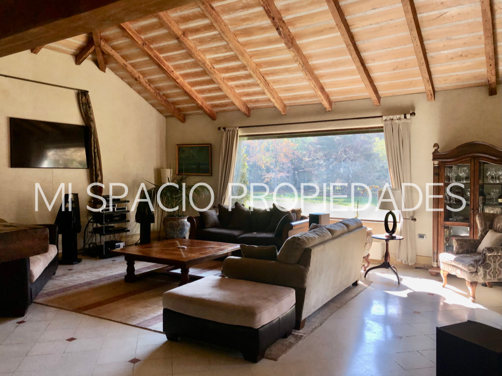 Casa de albañilería reforzada de 500 m2 totales y 380 m2 útiles en parcela de 5000 m2. 4 dormitorios y 4 baños, más servicios. Amplio hall de acceso que accede a gran living, todo en hermosos cielos de doble altura y 2 aguas con vigas a la vista, chimenea. Comedor independiente con muros en ladrillo a la vista, cocina amoblada, cubiertas en granito, isla central, espacio para comedor de diario, equipada: con encimera, horno empotrado y campana, estufa a combustión lenta, cava en obra, lavadero interior y baño de servicio. Baño de visita, amplio escritorio, zona familiar compuesta por 2 dormitorios y baño completo en tándem, dormitorio en suite, sala de estar de cielos de doble, estufa a combustión lenta, repisas en obra y acceso en linda escala en fierro a segundo estar en altillo o mansarda, amplio dormitorio principal en suite, estufa a combustión lenta, sala de baño con tina de hidromasaje y ducha en obra, walk in closet. Espaciosos corredores exteriores, área de servicio independiente, estacionamiento techado para 3 autos, bodega, baño de jardinero, sala de caldera. Quincho con parrilla en obra, horno de barro, piscina, pileta de agua, jardín consolidado con árboles frutales y ornamentales grandes, riego automático, derechos de aguas inscritos, pozo propio y conexión a pozo profundo del condominio, estanque de gas propio, fibra óptica, ventanas en fierro y persianas exteriores, vigas a la vista en cielos de toda la casa, hermosas tejas chilenas, calefacción central a gas por radiadores, generador, ablandador, portón automático. Ubicada en condominio consolidado de 123 parcelas, acceso controlado y diferenciado para residentes y visitas, barreras, guardias móviles, cámaras de vigilancia, factibilidad conexión fibra óptica Movistar, plaza de juegos infantiles y cancha de fútbol, caminos interiores de maicillo, a 3 minutos Autopista del Sol y colegio Trebulco, a 12 minutos colegios Carampangue y Los Ceibos, excelente plusvalía y seguridad.
