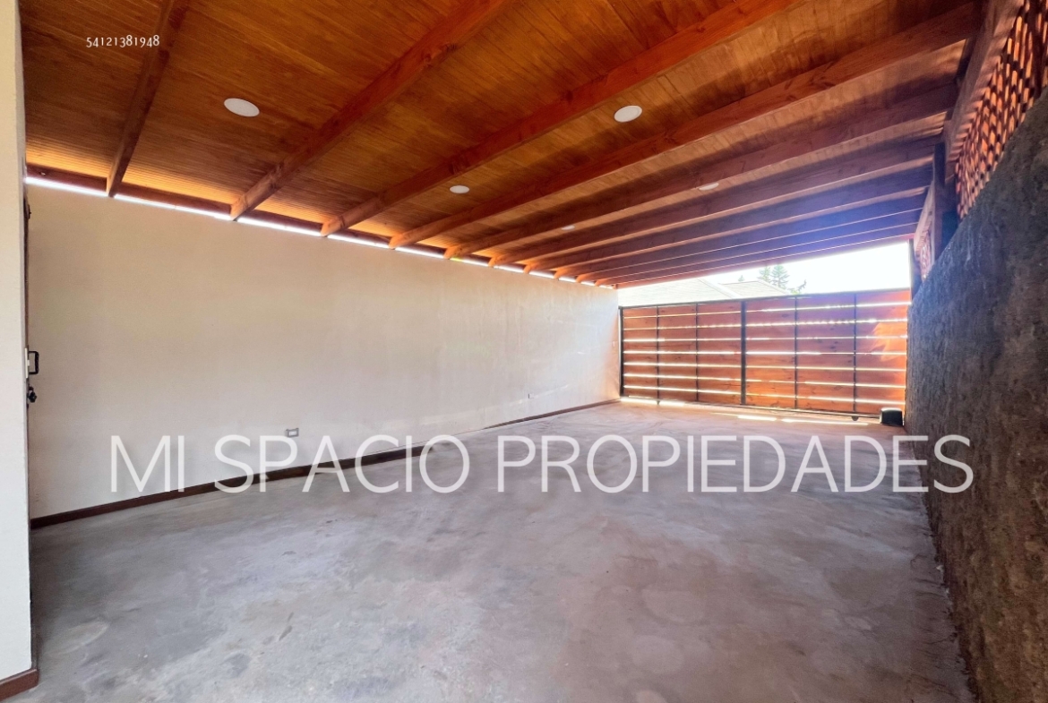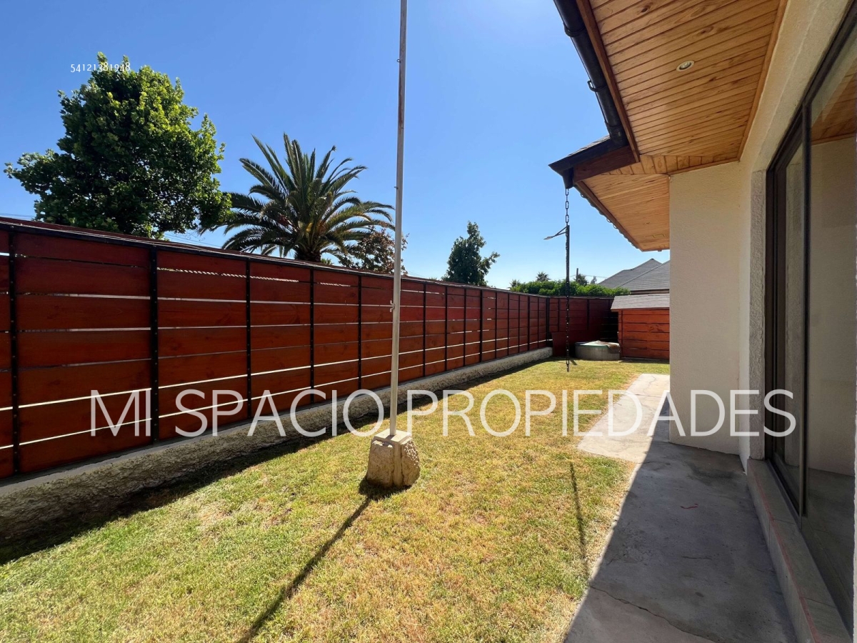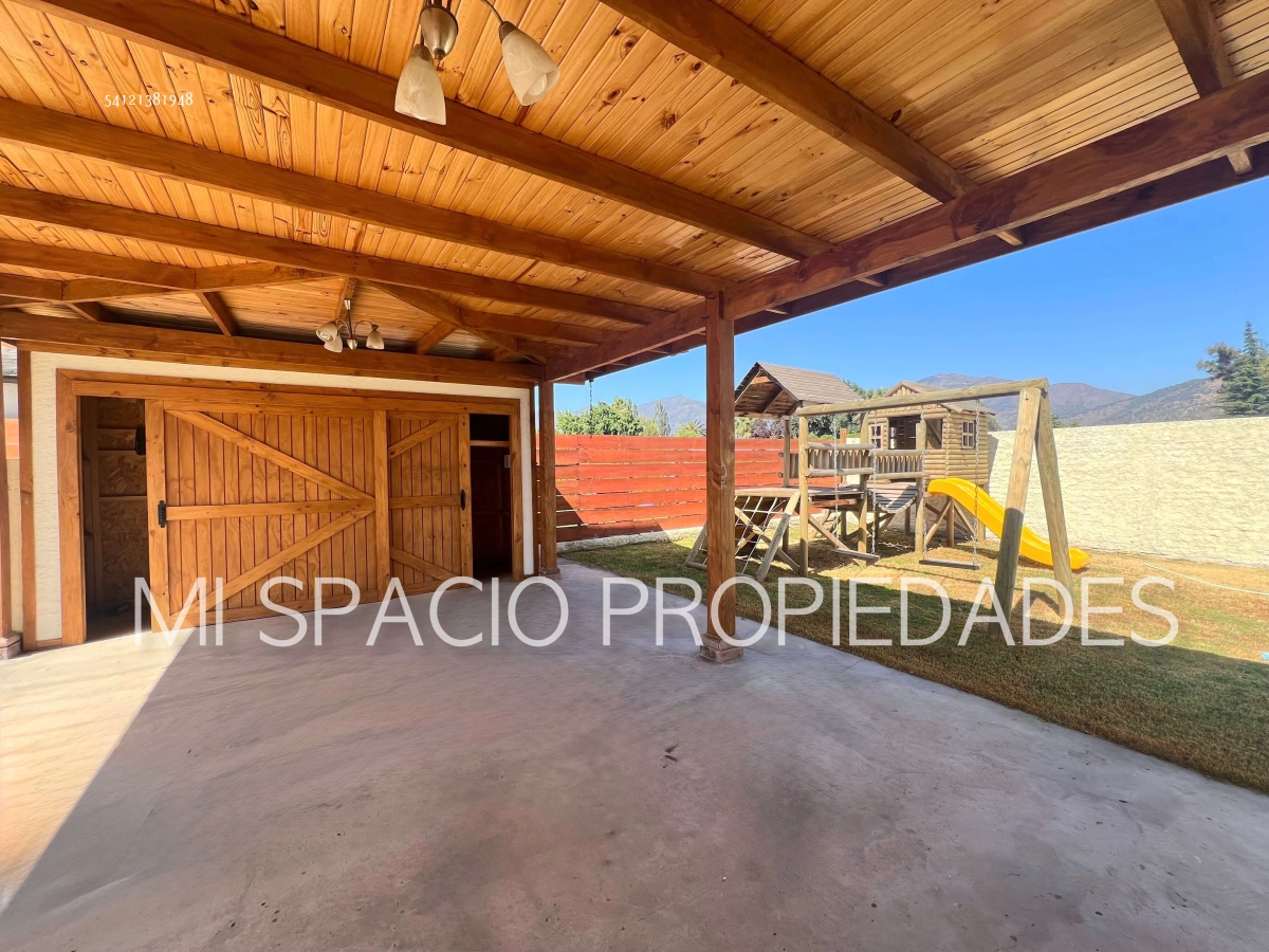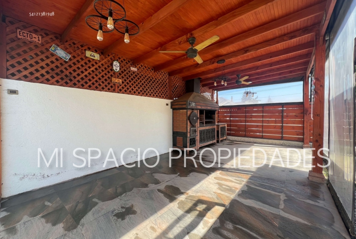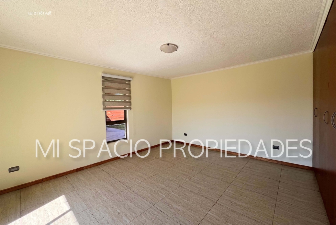 Amplio y luminoso living comedor  de cielos de doble aguas y vigas a la vista, estufa a pellet, cocina amoblada y equipada con acceso a patio posterior. 2 amplios dormitorios con closet, 1 baño completo con ducha en obra, dormitorio principal con closet y baño en suite. Estacionamiento techado para 2 autos con preciosos cielos en madera y bodega, zona de juegos de niños, terraza en deck con toldo, lavadero exterior, amplio quincho con asadera en obra, horno y lavacopas, cierre en persianas panorámicas, segundo estacionamiento o sala multiuso con bodega y baño. Jardín con pozo propio para riego, agua potable, gas por balones, fosa particular, cierre perimetral dos portones automáticos para entrada vehicular, puerta peatonal, espacio para estacionamiento de visitas. Ubicada en condominio cerrado, acceso controlado, urbanización subterránea, rodeado de vecinos en zona residencial de rápido acceso, bajos gastos comunes. Disponible. Requisitos acreditar ingreso familiares por $4.000.000 adecuados informes comerciales y codeudor.