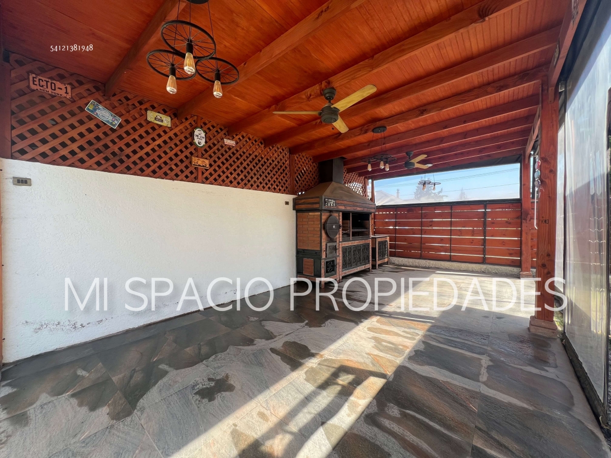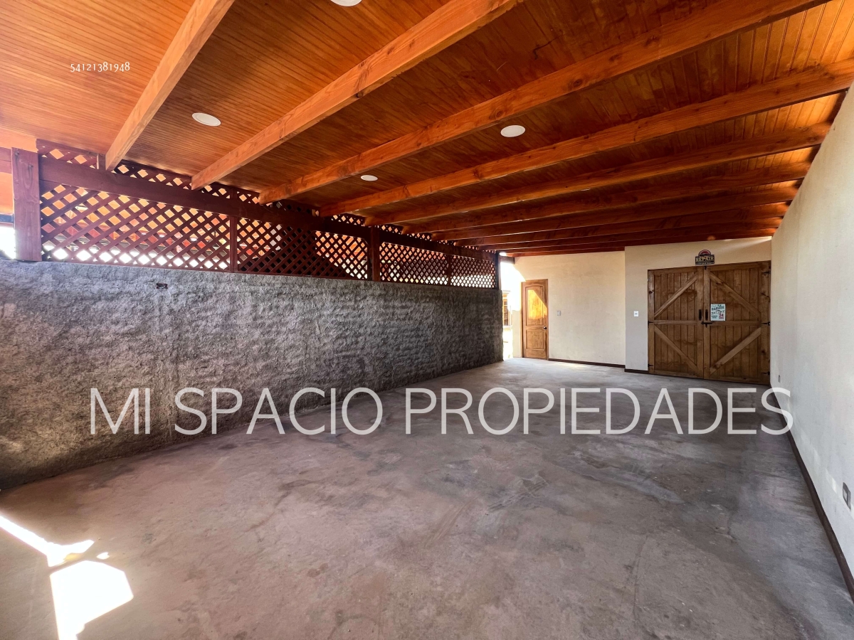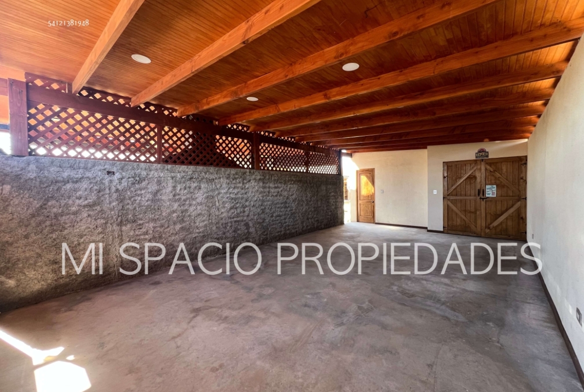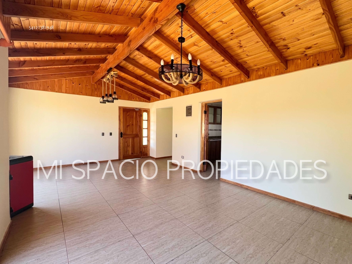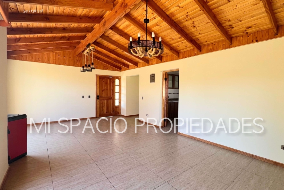 Amplio y luminoso living comedor  de cielos de doble aguas y vigas a la vista, estufa a pellet, cocina amoblada y equipada con acceso a patio posterior. 2 amplios dormitorios con closet, 1 baño completo con ducha en obra, dormitorio principal con closet y baño en suite. Estacionamiento techado para 2 autos con preciosos cielos en madera y bodega, zona de juegos de niños, terraza en deck con toldo, lavadero exterior, amplio quincho con asadera en obra, horno y lavacopas, cierre en persianas panorámicas, segundo estacionamiento o sala multiuso con bodega y baño. Jardín con pozo propio para riego, agua potable, gas por balones, fosa particular, cierre perimetral dos portones automáticos para entrada vehicular, puerta peatonal, espacio para estacionamiento de visitas. Ubicada en condominio cerrado, acceso controlado, urbanización subterránea, rodeado de vecinos en zona residencial de rápido acceso, bajos gastos comunes. Disponible. Requisitos acreditar ingreso familiares por $4.000.000 adecuados informes comerciales y codeudor.
