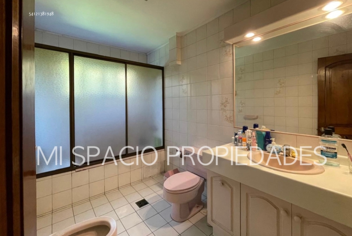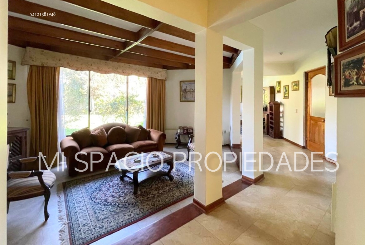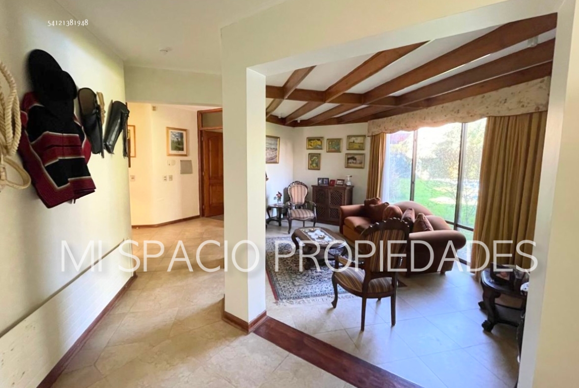 Casa de albañilería reforzada con losa de hormigón de entrepiso y techos en tejas de arcilla, de 327 m2, en terreno de 1000 m2, 5 dormitorios, 4 baños más servicios.