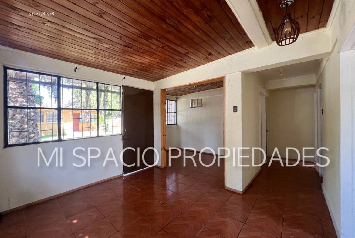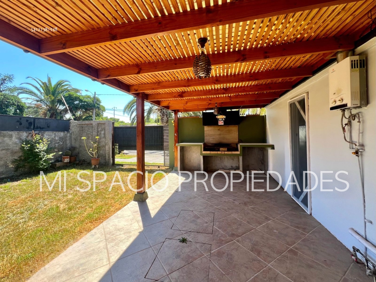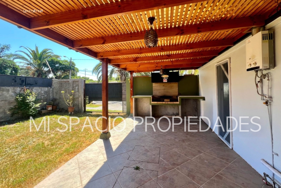 Casa de albañilería de 63 m2 más 20 de terraza, en terreno de 100 m2, 2 dormitorios, 1 baño y quincho.