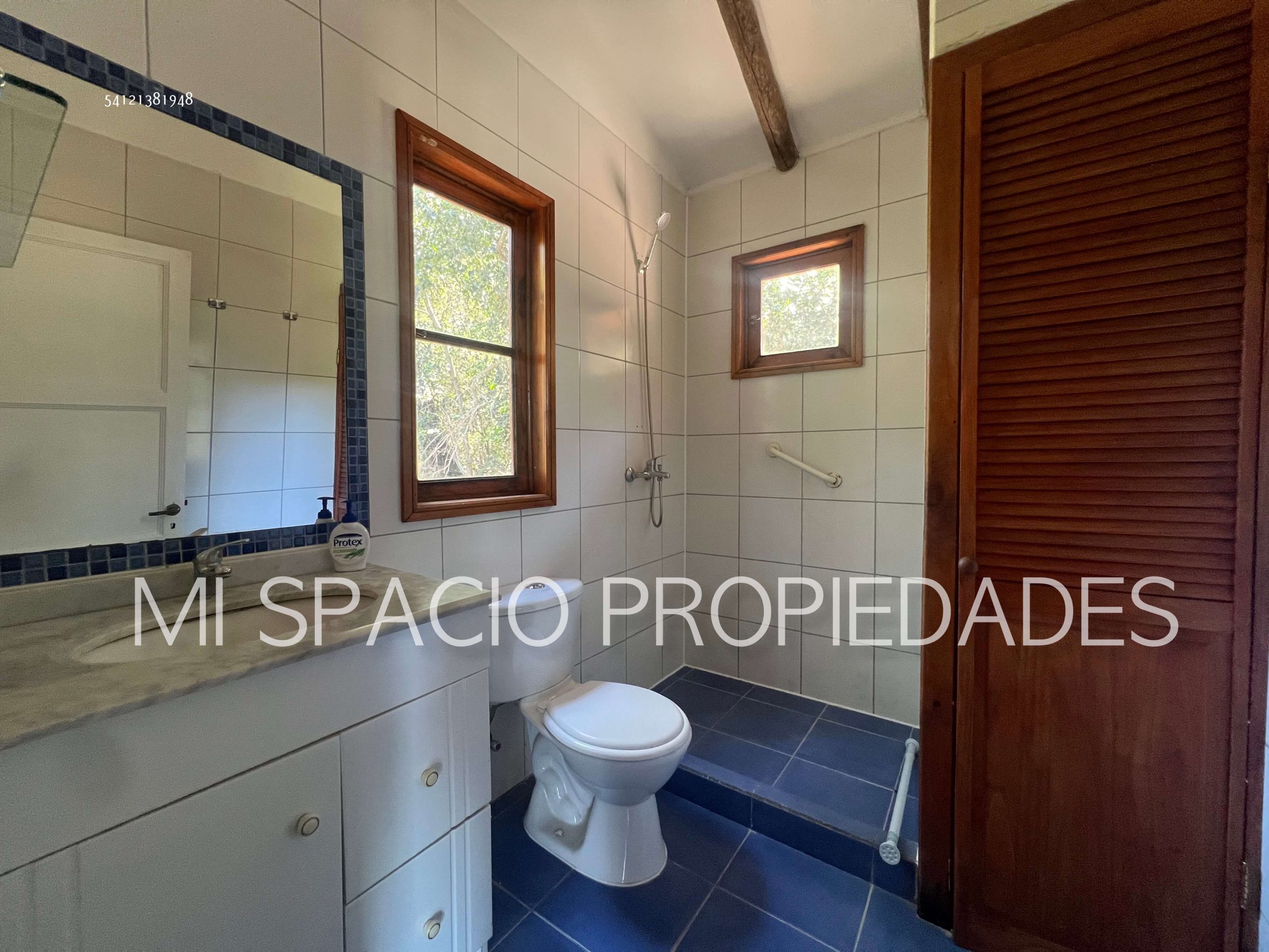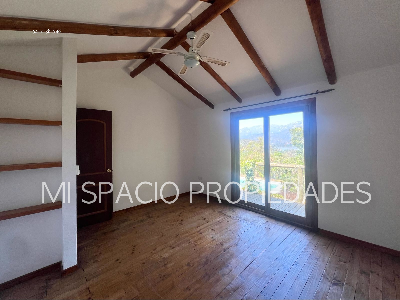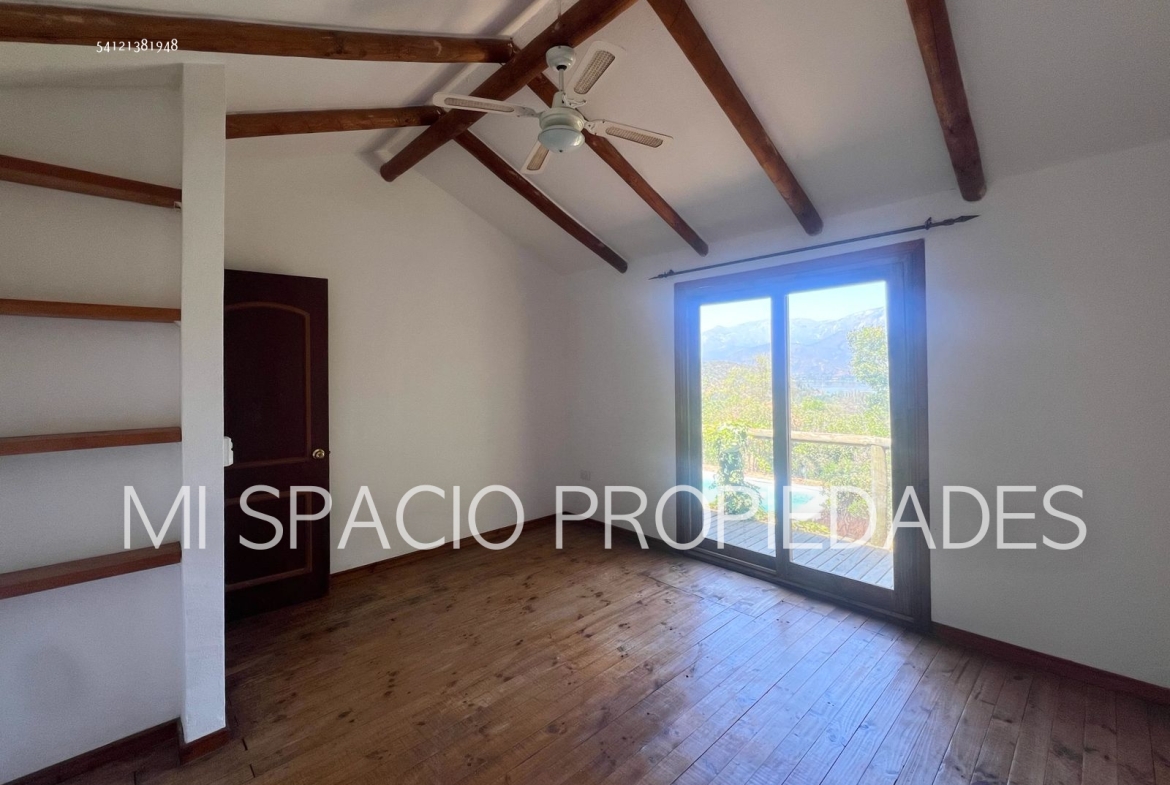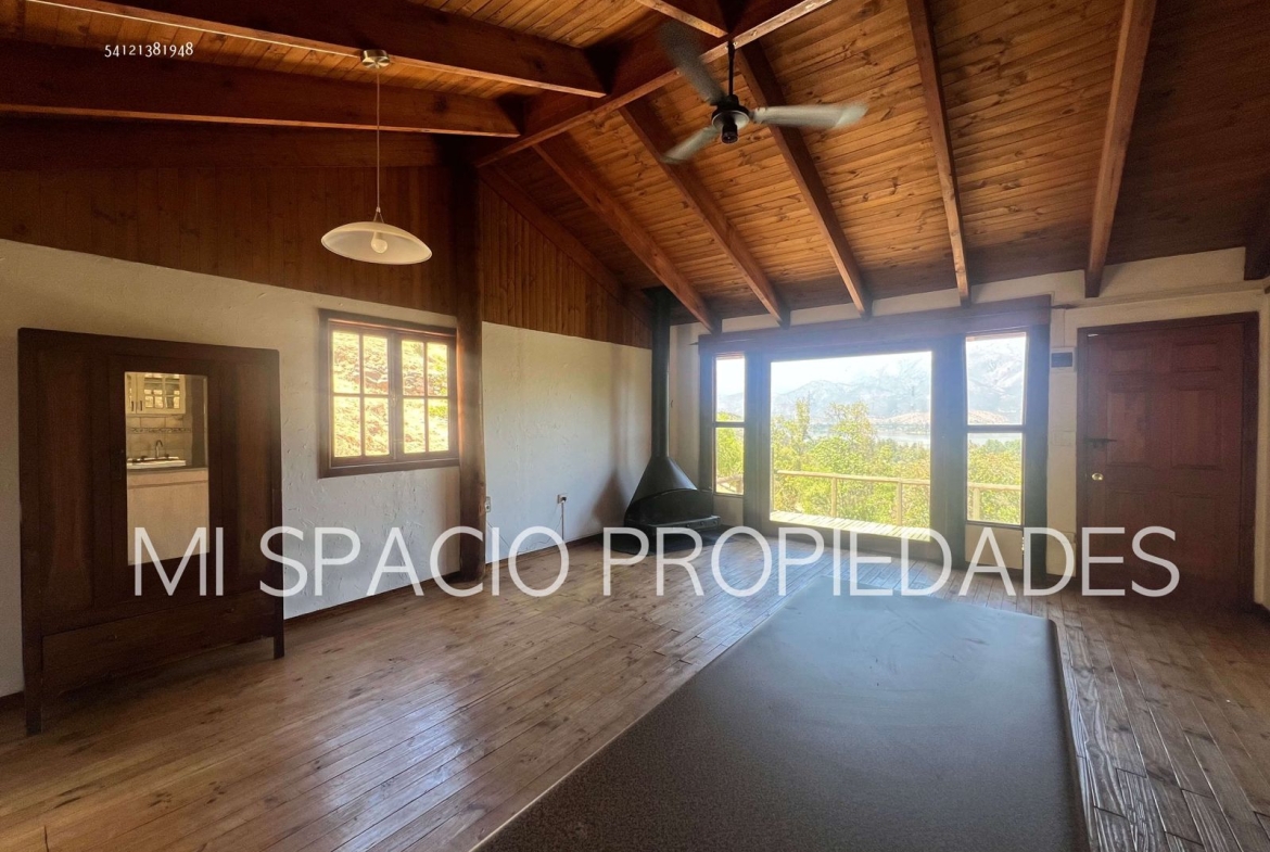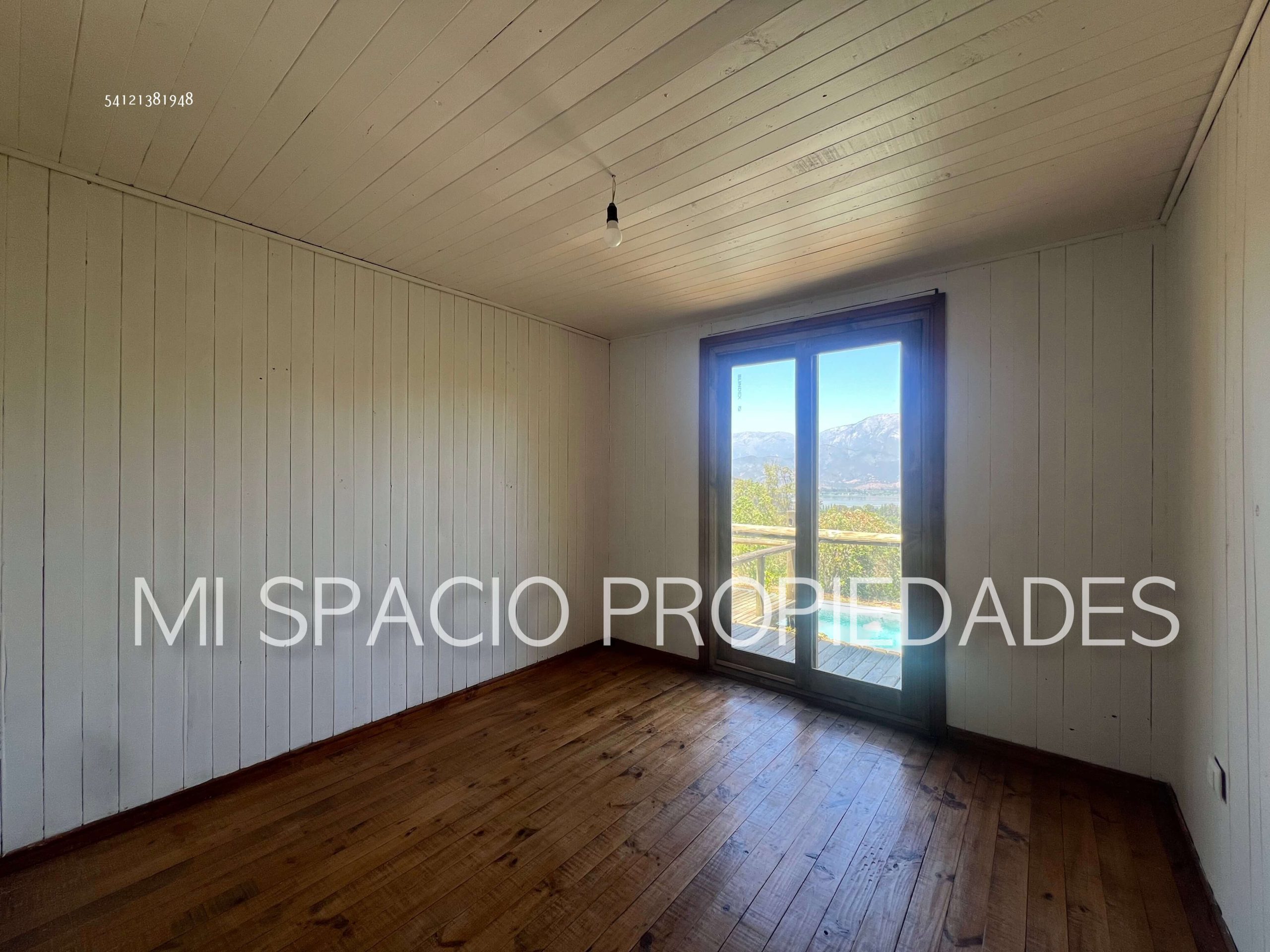 Living comedor con estufa a leña y ventanales con vista despejada a piscina y a laguna, cocina americana con acceso a jardín. 2 dormitorios y 1 baño completo con tina. 3er dormitorio en suite con walk in closet. Por puerta principal se accede a corredor exterior y amplia terraza, piscina con bomba y filtro rodeada de jardín aterrazado. Espacio para almacenamiento bajo la casa y al costado del estacionamiento techado para un auto. Cierre perimetral, jardín con variadas especies arbóreas, rodeado de vecinos.